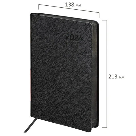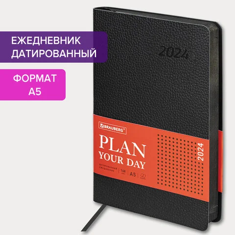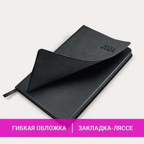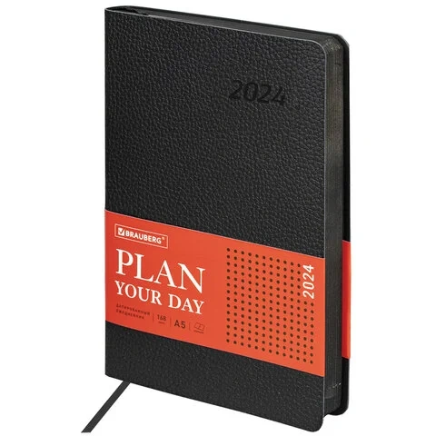 Ежедневник датированный Brauberg Stylish черный, A5, под кожу, 2024