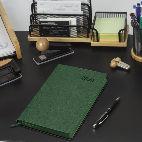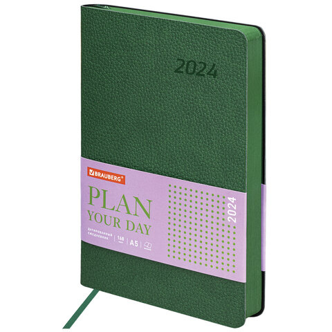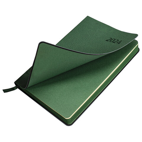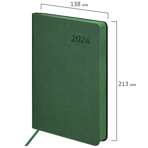 Ежедневник датированный Brauberg Stylish зеленый, A5, под кожу, 2024