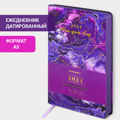 Ежедневник датированный Brauberg Vista Blur, A5, под кожу, гибкий, 2024
