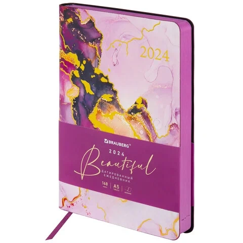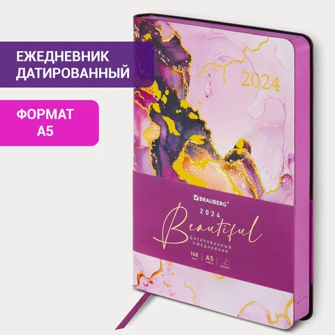 Ежедневник датированный Brauberg Vista Marble, A5, под кожу, гибкий, 2024
