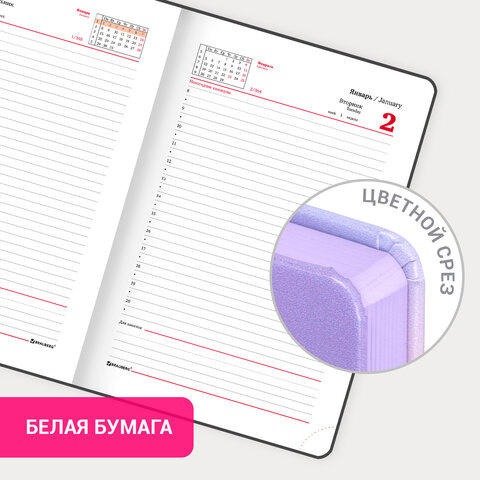 Ежедневник датированный Brauberg Vista Pastel, A5, под кожу, 2024