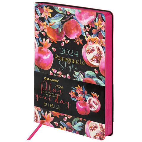 Ежедневник датированный Brauberg Vista Pomegranate, A5, под кожу, 2024