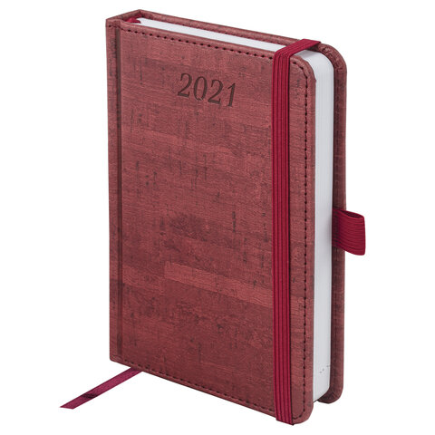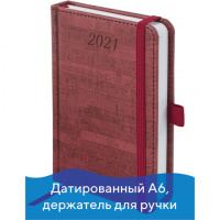 Ежедневник датированный Brauberg Wood бордовый, А6, 168 листов, 2021, кожзам, держатель для ручки