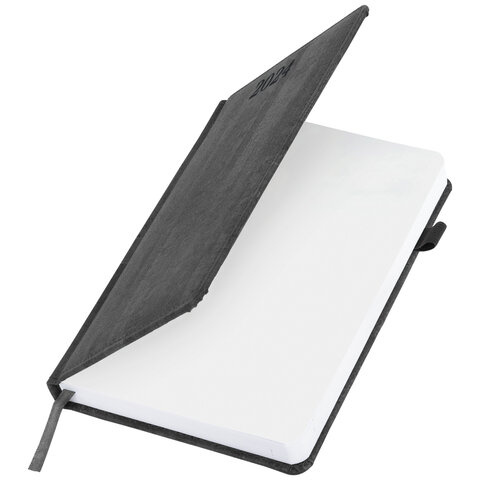 Внутренний блок включает 168 листов белой бумаги плотностью 70 г/м2. Каждая страничка имеет перфорированный угол. Благодаря стандартному формату А5 (138х213 мм) ежедневник удобно использовать как в офисе, так и на выездных деловых встречах. Твердая обложка стилизована под благородное дерево и выполнена в стильном сером цвете. Подходит для горячего тиснения. Снабжен резинкой-фиксатором, благодаря чему ежедневник не откроется в сумке или портфеле. Дополнением является закладка-ляссе, с помощью которой при необходимости можно быстро открыть ежедневник на нужной странице и держатель для ручки. Помимо прочего, ежедневник снабжен справочным материалом.