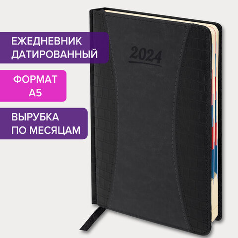 Ежедневник датированный Galant CombiContract черный, A5, под кожу, 2024