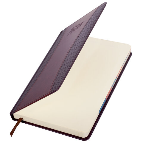 Дополнением является закладка-ляссе, с помощью которой при необходимости можно быстро открыть ежедневник на нужной странице, а также вырубка по месяцам. Помимо прочего, ежедневник снабжен обширным справочным материалом. Выполнен в благородном коричневом цвете.
