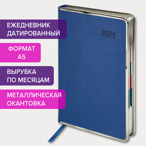 Ежедневник датированный Galant Infinity синий, A5, под кожу, 2024