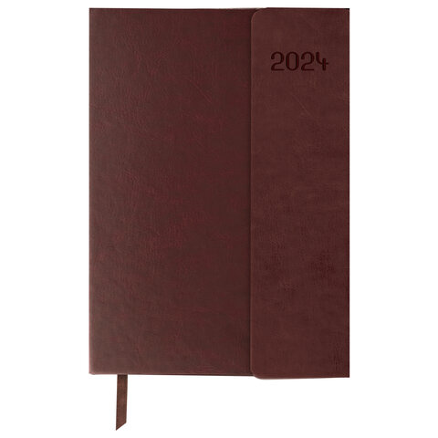 Ежедневник датированный Galant Magnetic коричневый, A5, под кожу, клапан, 2024