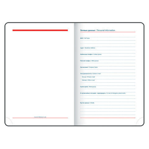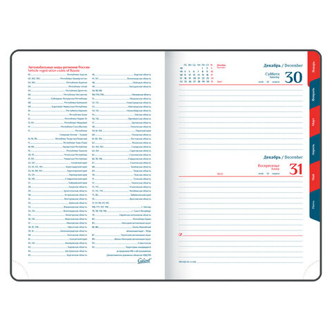 Внутренний блок включает 168 листов белой бумаги плотностью 70 г/м2. Каждая страничка имеет перфорированный угол. Благодаря стандартному формату А5 (148х218 мм) ежедневник удобно использовать как в офисе, так и на выездных деловых встречах. Твердая обложка, прошитая по периметру, стилизованная под гладкую кожу, фиксируется магнитной застежкой, поэтому ежедневник не откроется в сумке или портфеле и страницы не помнутся. Материал обложки подходит для горячего тиснения. Дополнением является закладка-ляссе, с помощью которой при необходимости можно быстро открыть ежедневник на нужной странице, а также вырубка по месяцам. Помимо прочего, ежедневник снабжен обширным справочным материалом. Выполнен в насыщенном красном цвете.