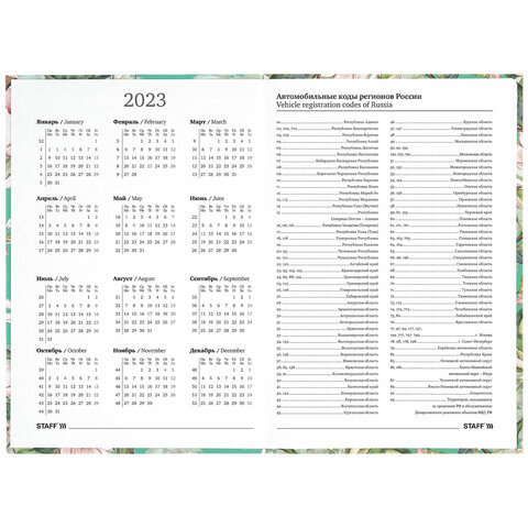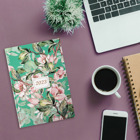 Ежедневник датированный на 2023 (145х215 мм), А5, STAFF, ламинированная обложка, 'Flowers', 114192
