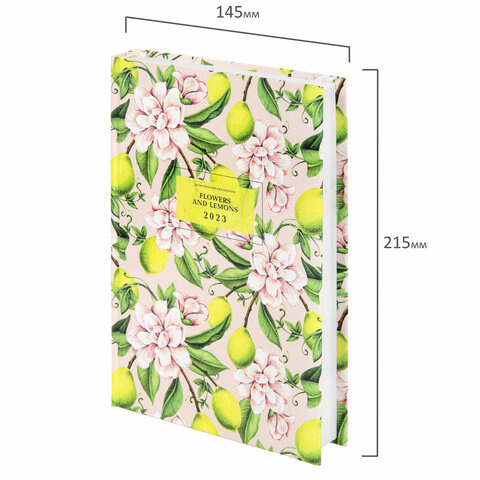 Ежедневник датированный на 2023 (145х215 мм), А5, STAFF, ламинированная обложка, 'Lemons & flowers',