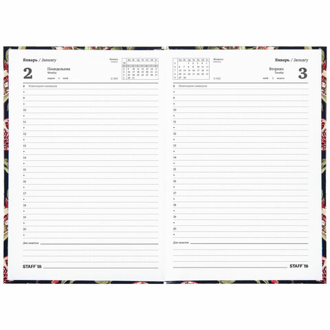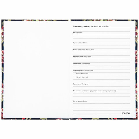 Внутренний блок включает 160 листов белой бумаги плотностью 60 г/м2. Благодаря стандартному формату А5 (145х215 мм) ежедневник удобно использовать как в офисе, так и на выездных деловых встречах. Твердая обложка покрыта глянцевой пленкой. Печать внутреннего блока в одну краску.