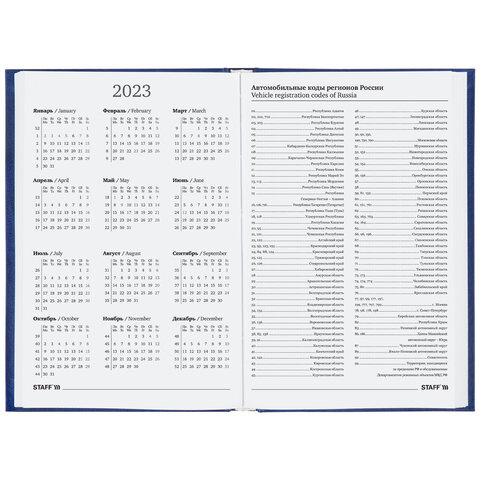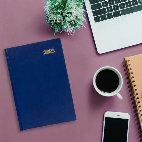Ежедневник датированный на 2023 (145х215 мм), А5, STAFF, обложка бумвинил, синий, 114187
