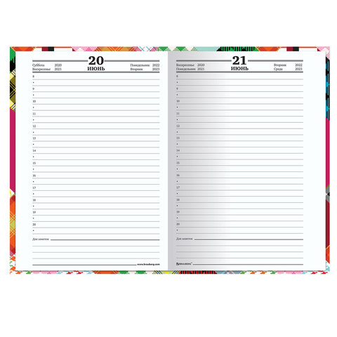 Внутренний блок содержит 192 листа офсетной бумаги плотностью 60 г/м2. Обложка 7БЦ (твердый переплет с рисунком и глянцевой пленкой) обеспечивают долгий срок службы. Помимо прочего ежедневник содержит коды городов и телефонную книгу. Формат А5.
