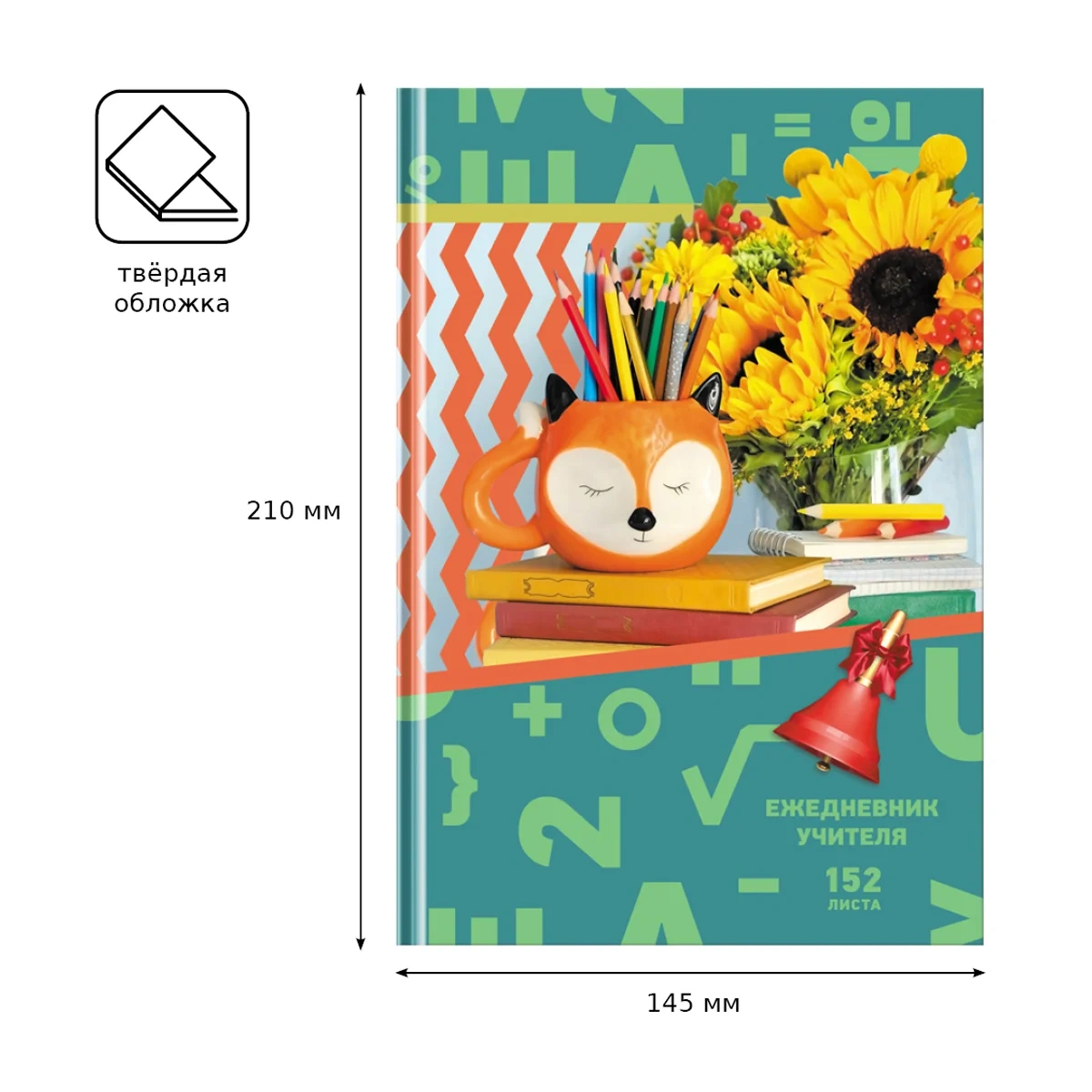 Ежедневник для учителя недатированный BG «Школьный звонок» формата А5 размером 145*210 мм станет незаменимым помощником преподавателя в планировании учебного процесса и ведении ежедневных дел. В блоке есть все необходимые для преподавателя разделы: календарь, расписание занятий и звонков, тематическое планирование, сводная ведомость успеваемости, классные ключи и т.п. — всё, что необходимо для организации образовательного процесса. Обложка ежедневника выполнена из твёрдого картона с полноцветной печатью и глянцевой ламинацией. Дизайн обложки со школьной тематикой. Внутренний блок ежедневника состоит из 152 листов офсетной бумаги плотностью 65 г/м2, 100 % белизны с печатью в две краски.