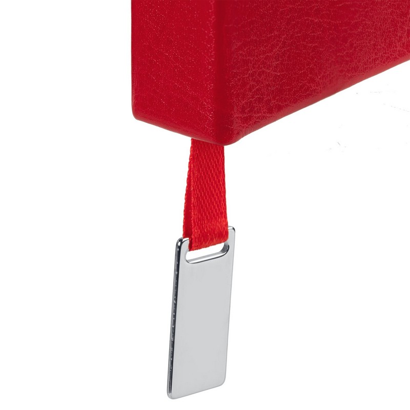 Ежедневник с твердой обложкой, выполнен из материала Nebraska, красный РР, дополнен ляссе в цвет обложки с металлической шильдой. Блок 986:Кол-во страниц — 256; Бумага — тонированная, плотность 70 г/м; Форзац и нахзац — тонированные.