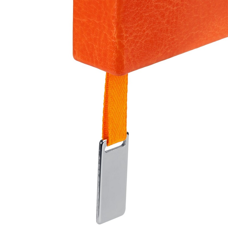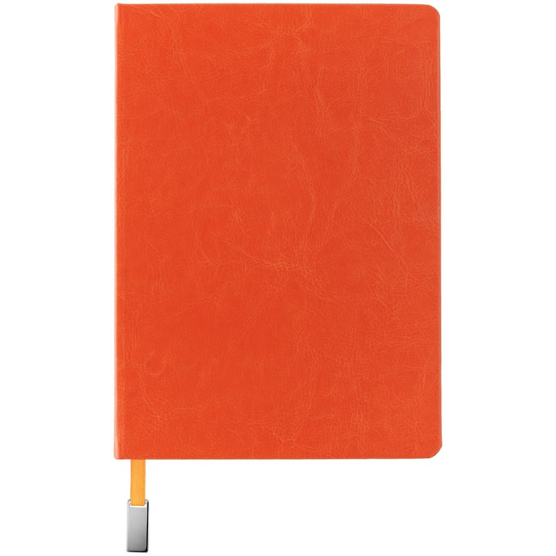 Ежедневник с твердой обложкой, выполнен из материала Nebraska, оранжевый ОО, дополнен ляссе в цвет обложки с металлической шильдой. Блок 986:Кол-во страниц — 256; Бумага — тонированная, плотность 70 г/м; Форзац и нахзац — тонированные.