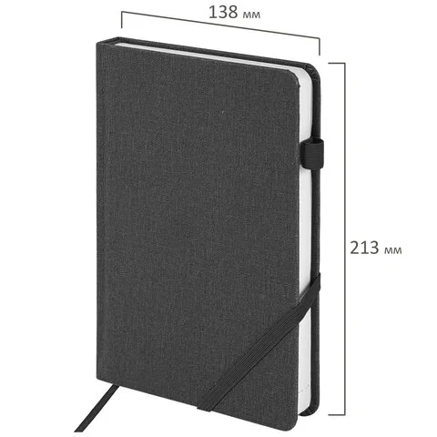 Ежедневник недатированный А5 (138x213 мм) BRAUBERG 'Finest', 136 л., кожзам, резинка, черный, 111869