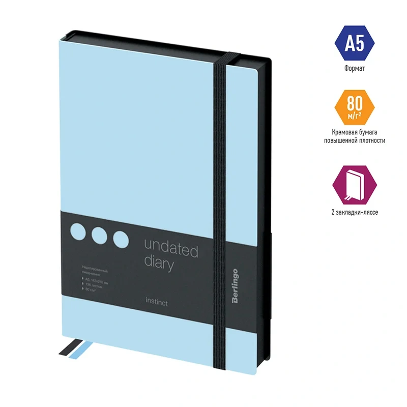 Ежедневник недатированный Berlingo Instinct черный/аквамарин, A5, 136 листов, кожзам