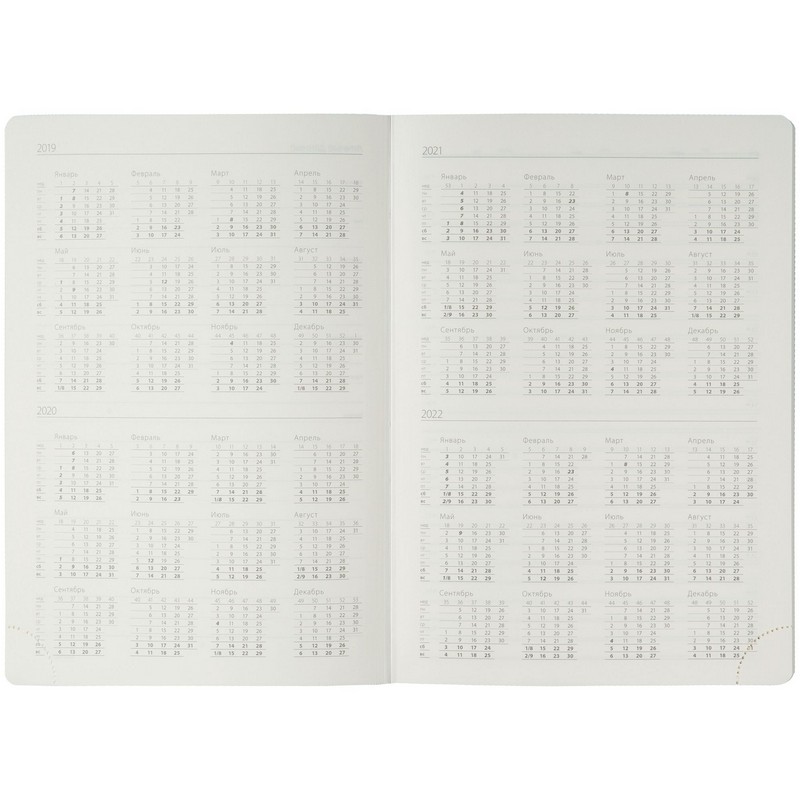Ежедневник с твердой обложкой, выполнен из материала Winner, белый ВВ, дополнен ляссе в цвет обложки с металлической шильдой. Блок 986:Кол-во страниц — 256; Бумага — тонированная, плотность 70 г/м; Форзац и нахзац — тонированные.