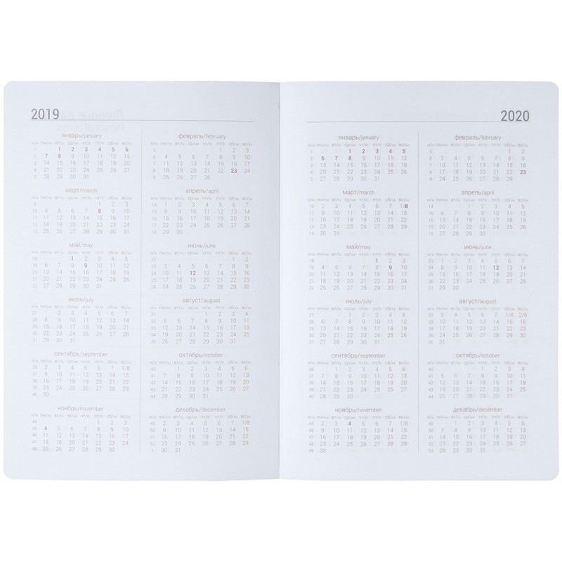 Ежедневник с твердой обложкой, выполнен из материала Brand, серый СС, обрез серого цвета, дополнен резинкой и ляссе серого цвета. Кол-во страниц — 336; Бумага — белая, плотность 70 г/м; Форзац и нахзац — белого цвета.