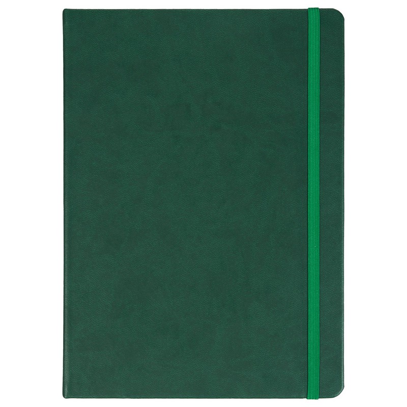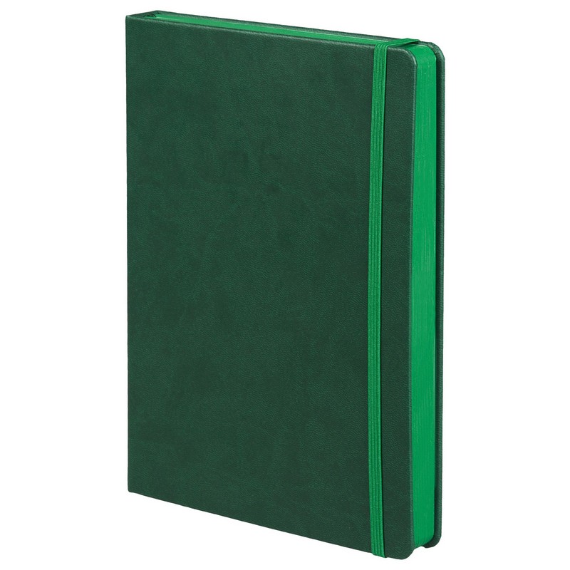 Ежедневник с твердой обложкой, выполнен из материала Brand, зеленый FF, обрез зеленого цвета, дополнен резинкой и ляссе зеленого цвета. Кол-во страниц — 336; Бумага — белая, плотность 70 г/м; Форзац и нахзац — белого цвета.