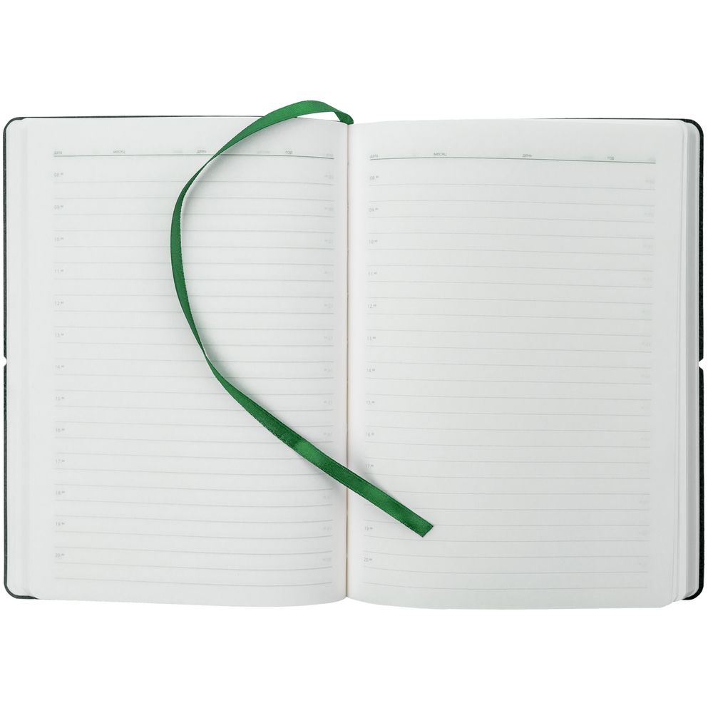Гибкая обложка из материала Filigrana Melange, светло-зеленый YY. Материал имитирует меланжевую ткань. Резинка с захватом зеленого цвета.Блок 986, недатированный:Кол-во страниц — 256;Календарь на 4 года;Тонированная бумага.Ежедневник поставляется в шубере. Цвет: зеленый. Размер изделия: 15х21 см. Материал: искусственная кожа. Возможные виды нанесения: УФ-печать; Тиснение; Шелкография с трансфером; Шелкография (1 цвет);