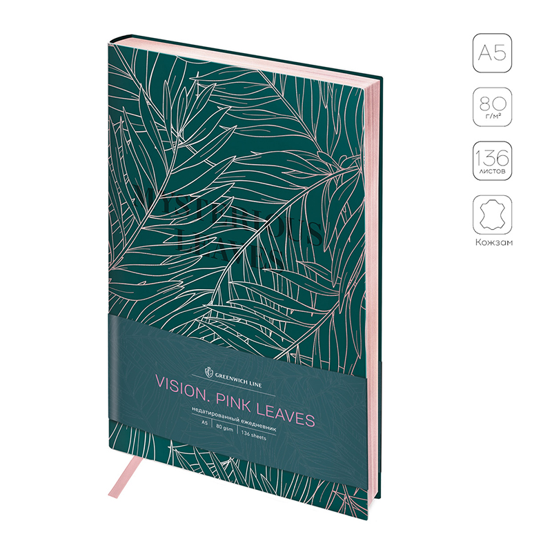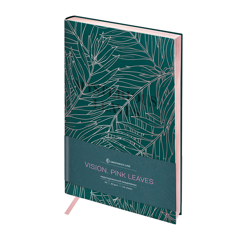 Ежедневник недатир. A5, 136л., кожзам, Greenwich Line 'Vision. Pink leaves', тон.блок, роз.срез