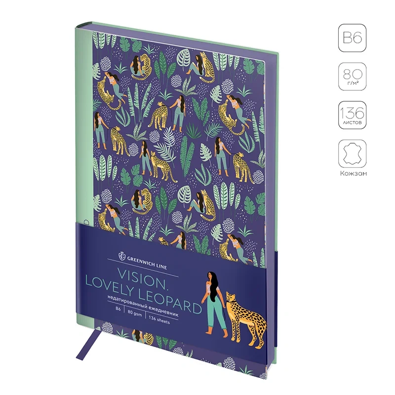 Ежедневник недатир. B6, 136л., кожзам, Greenwich Line 'Vision. Lovely leopard', тон.блок, цв.срез