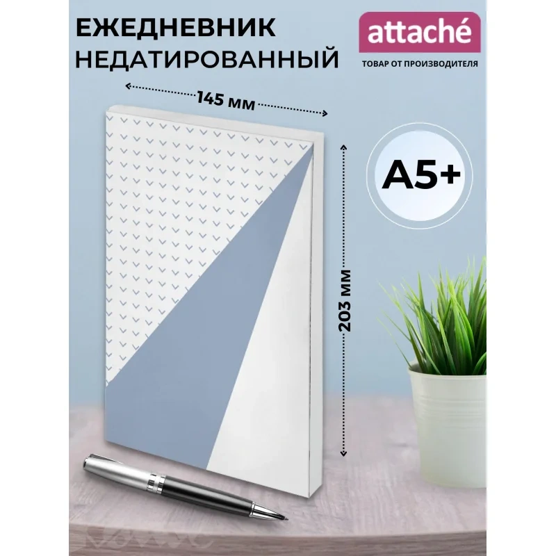 Ежедневник недатированный ,7БЦ,А5,128л, Attache Economy Aim, бел Ежедневник датированный Attache Economy Aim А5 на 2024 год 128 листов. Обложка из цветного твердого картона с ламинацией. Стиль обложки универсальный, офисный. Тип крепления - склейка. Бумага белый офсет, плотностью 55-65 г/кв.м, печать в блоке в 1 краску. Содержит информационно-справочный блок. Нет петли для ручки. Размер: 145х203 мм. Ежедневник отлично подойдет для работы в офисе.