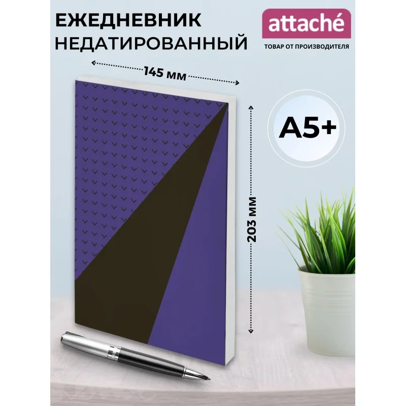 Ежедневник недатированный Attache Economy Aim 7БЦ А5 128 листов фиолетовыйЕжедневник рассчитан на 2024 год и содержит 128 листов. Обложка выполнена из плотного цветного картона с глянцевой ламинацией, оформлена в универсальном офисном стиле. Внутренний блок изготовлен из белой офсетной бумаги плотностью 55-65 г/кв.м с разметкой в линейку и однокрасочной печатью. Листы склеены для удобства ежедневного использования.Ежедневник дополнен информационно-справочным блоком. Конструкция не предусматривает петлю для ручки, карман, ляссе, фиксирующую резинку и скруглённые углы. Изделие имеет твёрдую обложку фиолетового цвета и вертикальную ориентацию. Размер - 14.5x20.3 см.