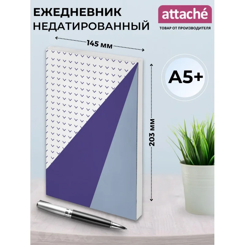 Ежедневник недатированный Attache Economy Aim 7БЦ А5 128 листов комбинированныйЕжедневник рассчитан на 2024 год и содержит 128 листов. Обложка выполнена из цветного твёрдого картона с глянцевой ламинацией и имеет комбинированную расцветку. Универсальный офисный стиль изделия делает его удобным для регулярной работы. Внутренний блок состоит из белой офсетной бумаги плотностью 55-65 г/кв.м, страницы разлинованы и напечатаны в одну краску. Листы соединены методом склейки, что обеспечивает комфорт при ежедневном использовании.В ежедневнике предусмотрен информационно-справочный блок. Модель не оснащена петлёй для ручки, карманом, ляссе, фиксирующей резинкой и скруглёнными углами. Твёрдая обложка, вертикальная ориентация, размер - 14.5x20.3 см.