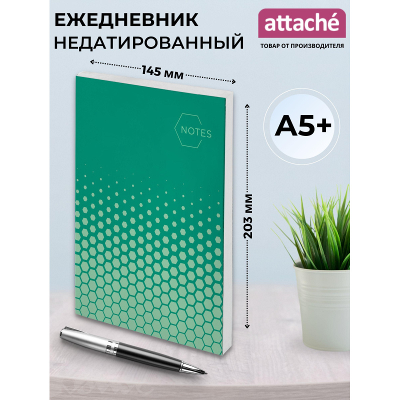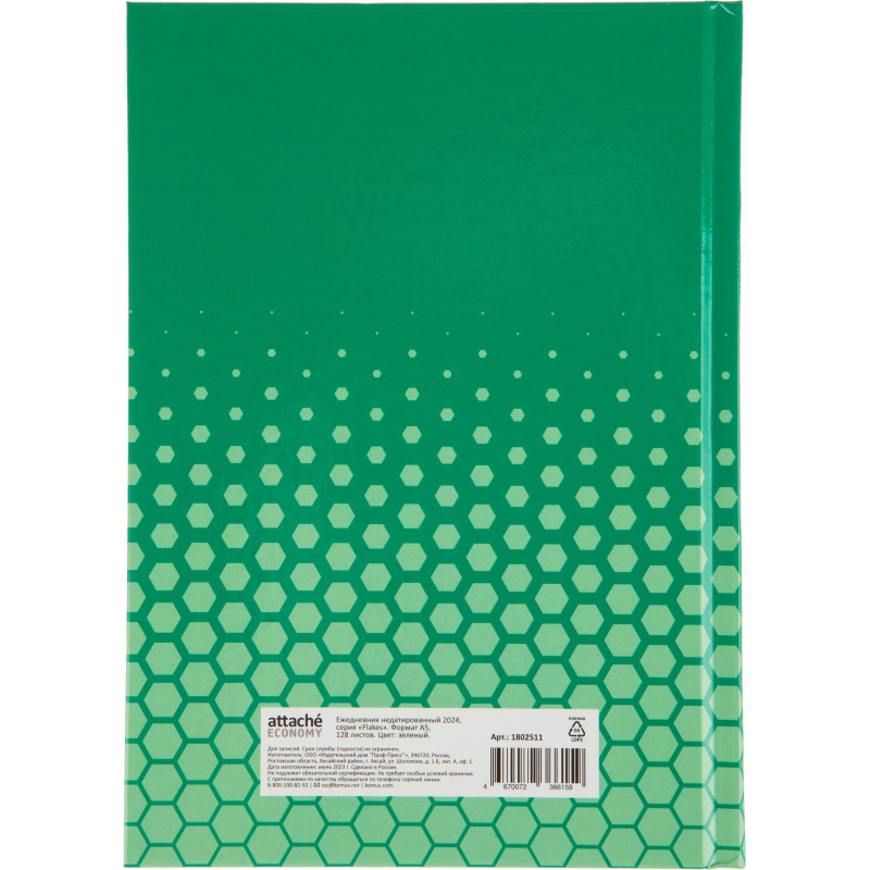 Ежедневник недатированный, 7БЦ,А5,128л,глян.пл.,Attache Economy Flakes, зел Ежедневник датированный Attache Economy Flakes А5 на 2024 год 128 листов. Обложка из цветного твердого картона с глянцевой ламинацией. Стиль обложки универсальный, офисный. Тип крепления - склейка. Бумага белый офсет, плотностью 55-65 г/кв.м, печать в блоке в 1 краску. Содержит информационно-справочный блок. Нет петли для ручки. Размер: 145х203 мм. Ежедневник отлично подойдет для работы в офисе.
