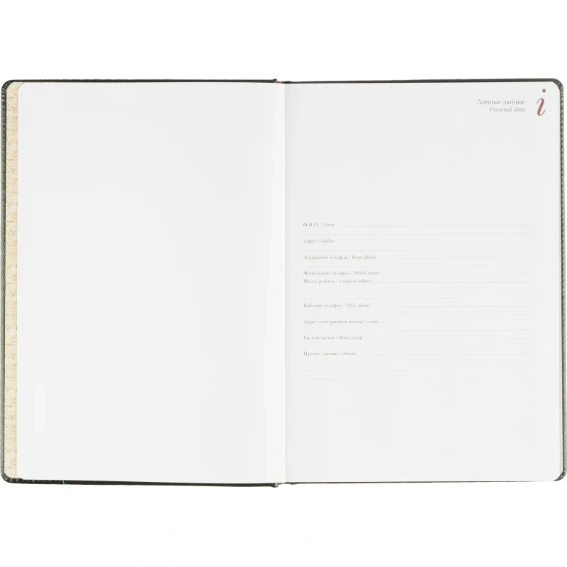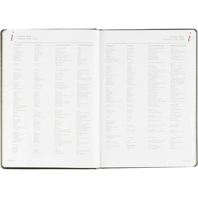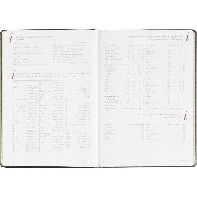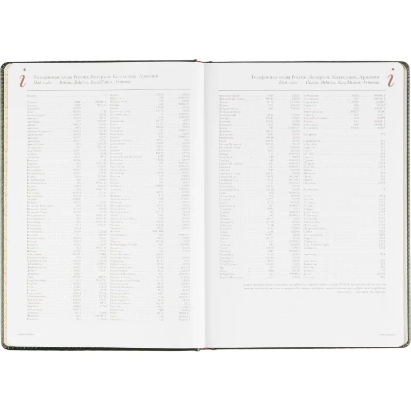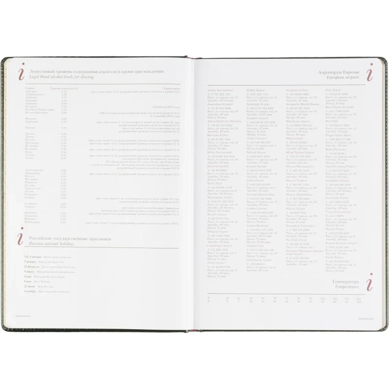 Для удобства предусмотрена бордовая закладка-ляссе. Ежедневник крепится с помощью сшивки. Включает информационно-справочный блок с международными кодами городов, цифровыми кодами ГИБДД, телефонами первой необходимости и другими полезными данными. Этот ежедневник подходит для персонализации, включая нанесение логотипа тиснением, шёлкографией или УФ-печатью.
