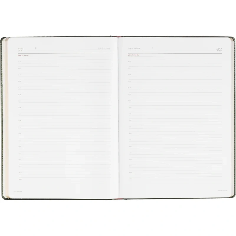 Ежедневник формата A4 с твёрдой обложкой зелёного цвета, выполненной из искусственной кожи, станет стильным и практичным аксессуаром для ежедневных записей. Внутренний блок состоит из 136 листов (272 страницы) белой офсетной бумаги плотностью 90 г/кв.м. с линейкой. Печать выполнена в два цвета.