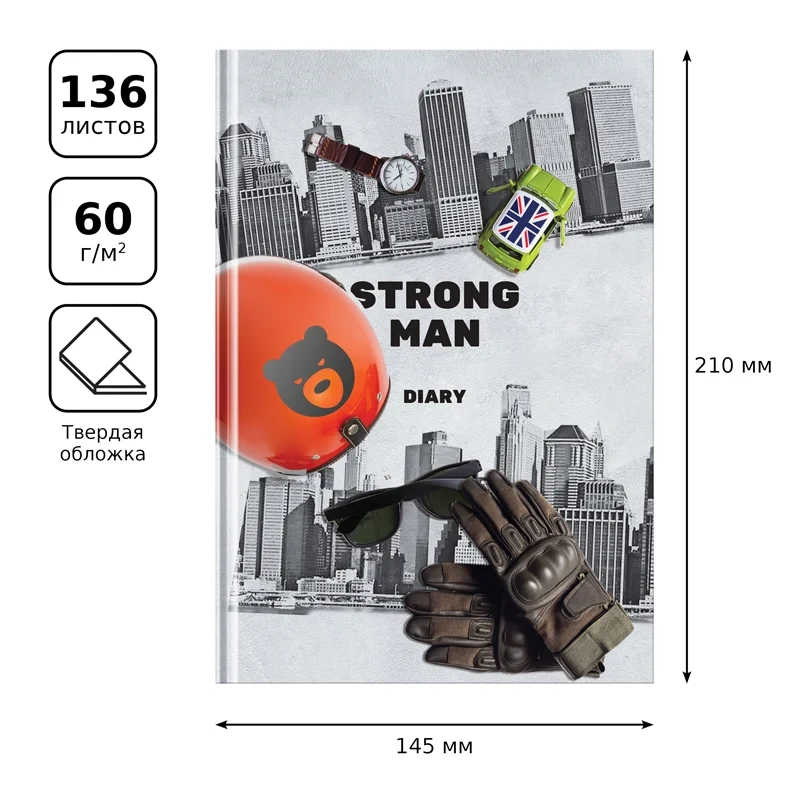 Ежедневник недатированный А5, 136л., 7БЦ, BG 'Strong men', глянцевая ламинация