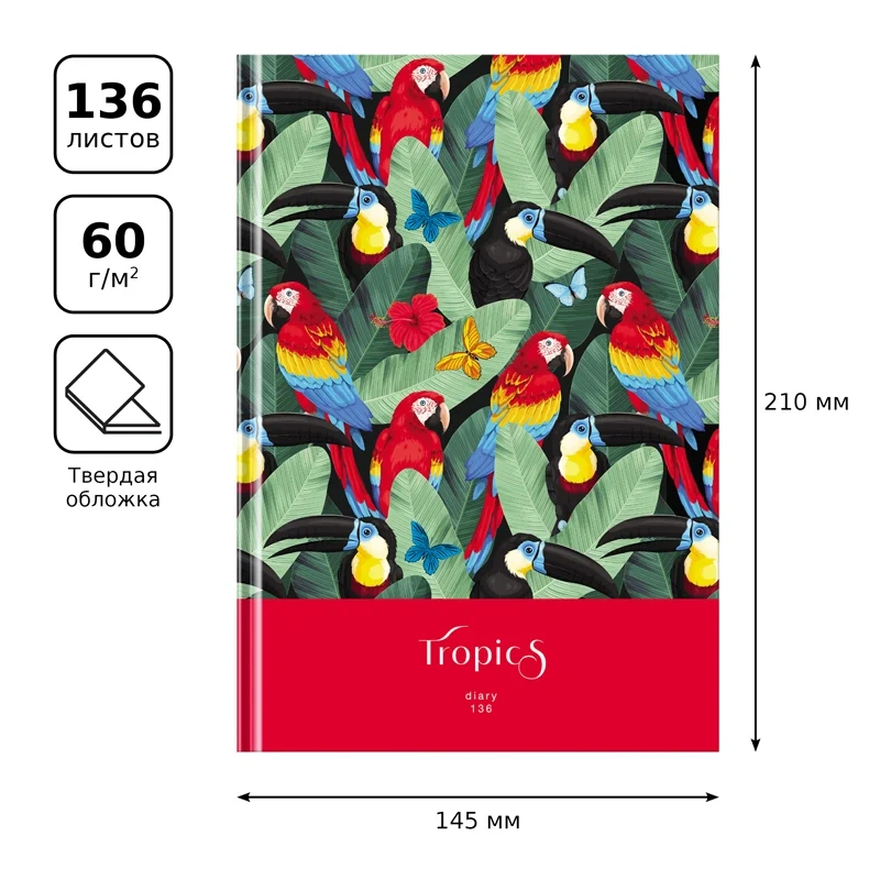 Ежедневник недатированный А5, 136л., 7БЦ, BG 'Тропический рай', глянцевая ламинация