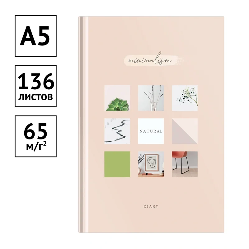 Ежедневник недатированный А5, 136л., 7БЦ, OfficeSpace 'Моноколор. Art of minimalism', матовая ламина