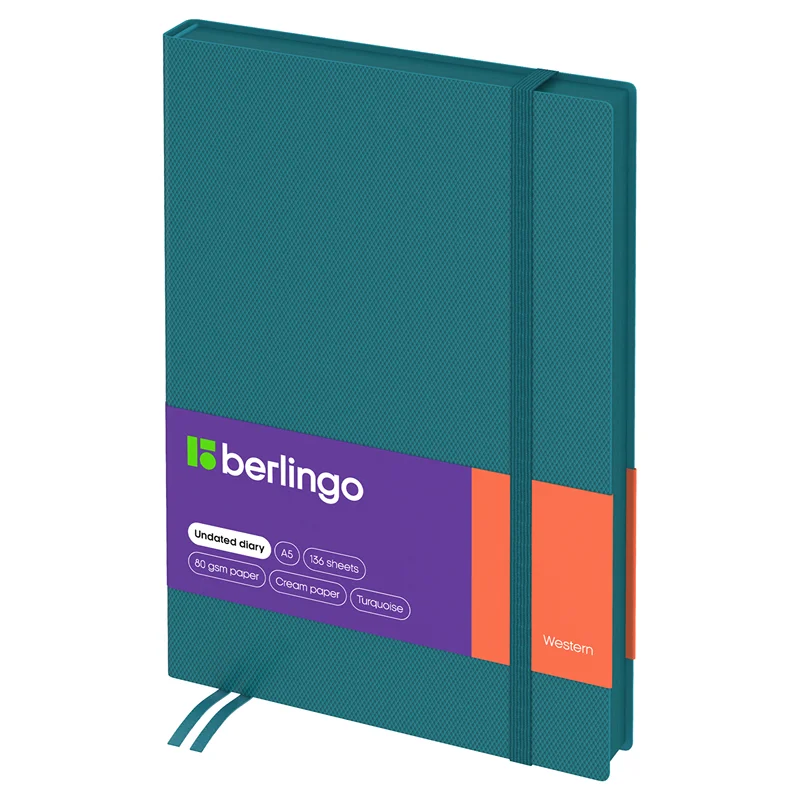 Ежедневник недатированный, А5, 136л., кожзам, Berlingo 'Western', бирюзовый, с резинкой