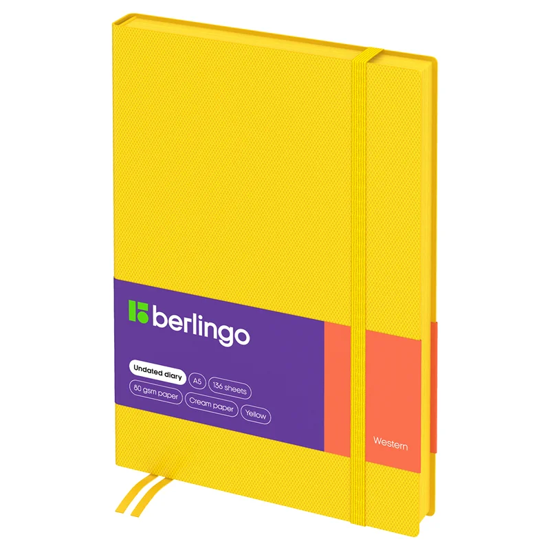Ежедневник недатированный, А5, 136л., кожзам, Berlingo 'Western', желтый, с резинкой