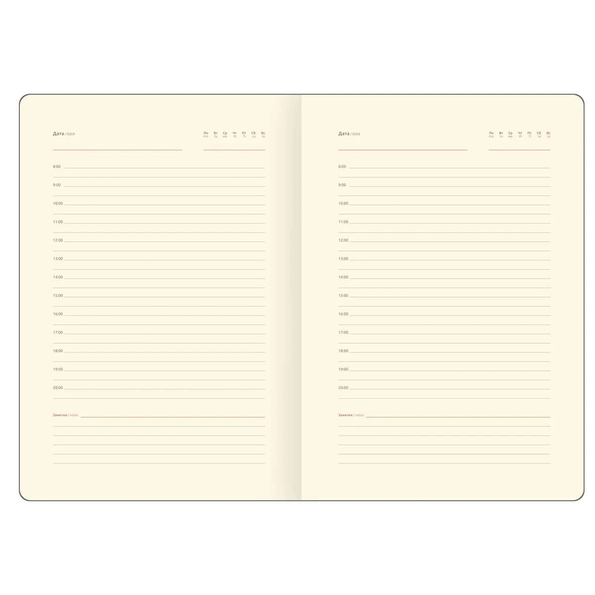 Ежедневник размером 143*210 мм содержит 136 листов из высококачественной кремовой бумаги повышенной плотности 80 г/кв.м с пантонной печатью в 2 краски. Формат: А5. Размер: 143*210 мм. Количество листов: 136. Материал обложки: экокожа. Цвет обложки: разноцветный.