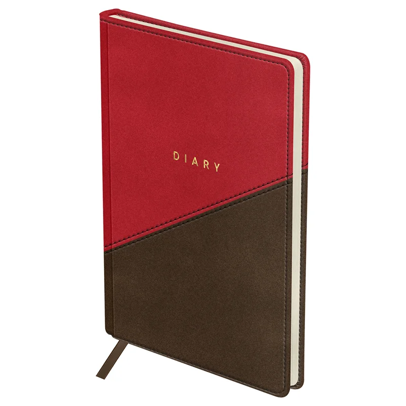 Недатированный ежедневник OfficeSpace серии 'Duo' формата А5 — отличный помощник для тех, кто ценит своё время. Размер изделия — 145*205 мм. Внутренний блок состоит из 136 листов тонированной офсетной бумаги плотностью 70 г/м?. Он напечатан с использованием двух красок. Ежедневник содержит справочные материалы. Твёрдая обложка сделана из экокожи двух цветов — красной и коричневой. Классический дизайн подчёркивает закладка-ляссе и прошивка обложки. Перфорированные уголки позволяют сразу открыть ежедневник на нужной странице.
