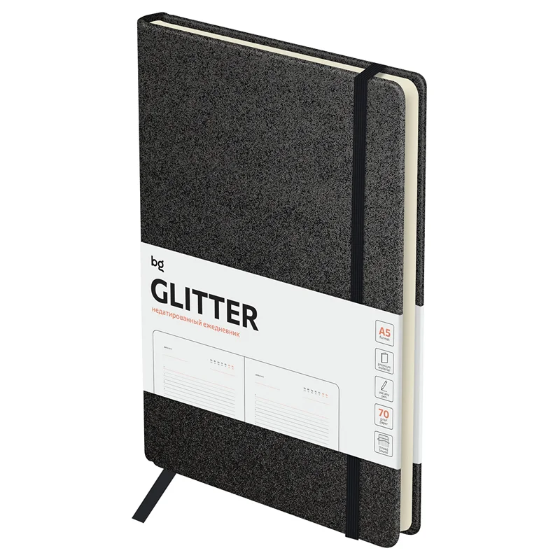 Ежедневник недатированный, А5, 136л., твердый переплет, диз. картон, BG 'Glitter. Black', черный, на