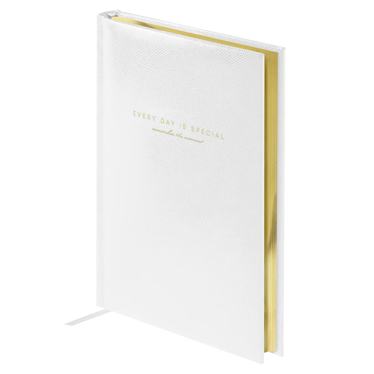 Формат – А5 (145*205 мм). Изделие состоит из 136 листов тонированной бумаги плотностью 70 г/м2, которая подходит для любых типов ручек и не будет просвечиваться. В линованный блок с полем для даты удобно записывать встречи, идеи и задачи.