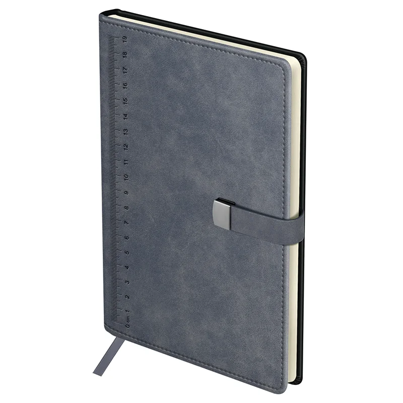 С левой стороны есть линейка, нанесённая на обложку при помощи блинтового тиснения. Магнитная застёжка-клапан не даст ежедневнику произвольно открыться и поможет надолго сохранить внешний вид. Перфорированные уголки и закладка-ляссе обеспечат комфорт и удобство при использовании. В ежедневнике предусмотрена справочная информация, годовой планер, календарь и другие полезные сведения. Подходит под персонализацию. Индивидуальная упаковка в термоусадочную пленку.