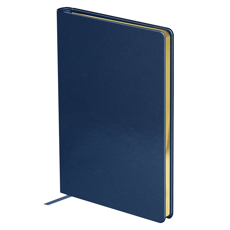 Недатированный ежедневник BG формата А5 серии 'Windsor' в твёрдой обложке тёмно-синего цвета, выполненной из высококачественной экокожи, отлично подойдёт тем, кто предпочитает классику в дизайне и комфорт в деталях. Золотой срез придает особый шарм. Внутренний блок состоит из 136 листов офсетной тонированной бумаги плотностью 70 г/м2 и печатью в 2 краски. Скруглённые уголки листов с перфорацией. Изделие представлено в размере 145*205 мм.