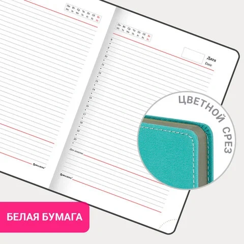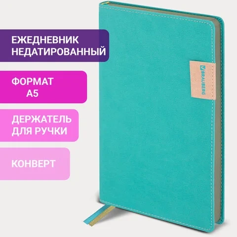 Ежедневник недатированный А5 (138х213 мм), BRAUBERG 'AIM', под кожу, 136 л., бирюзовый, 113419