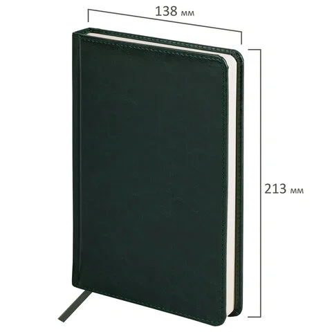 Ежедневник недатированный А5 (138х213 мм) BRAUBERG 'Imperial', 160 л., кожзам, зеленый, 111855