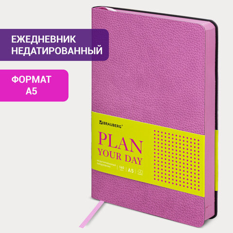 Ежедневник недатированный А5 (138х213 мм) BRAUBERG 'Stylish', гибкий, 160 л., кожзам, розовый, 11186