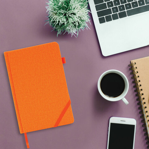 Ежедневник недатированный А5 (138x213 мм) BRAUBERG 'Finest', 136 л., кожзам, резинка, оранжевый, 111